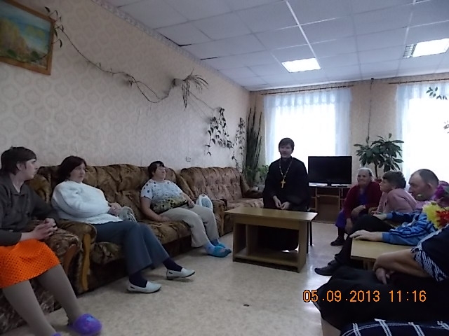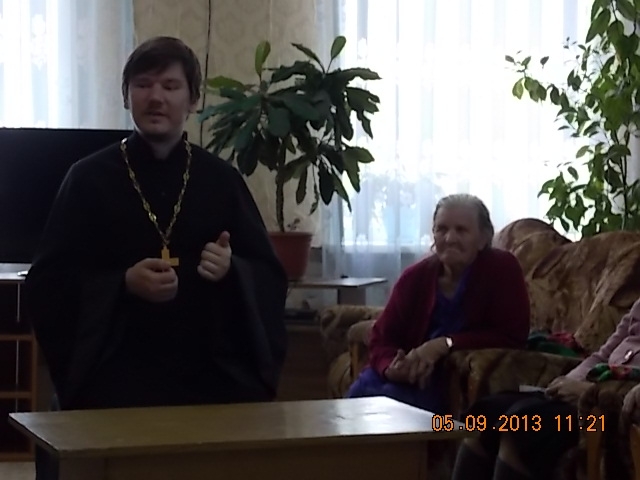 5 сентября,настоятель Ижморского храма священник Антоний Чабан встретился с пенсионерами,проходящими лечение в Муниципальном учреждении социального обслуживания. Батюшка рассказал о главных церковных праздниках сентября:Усекновении главы Иоанна Предтечи,Рождестве Богородицы и Воздвижении Креста Господня."Большинству людей,как правило,известны три церковных праздника:Рождество Христово,Крещение Господне и Пасха.Но для православных христиан важны и другие события из жизни Христа Спасителя,Богородицы и великих святых.Так 11 сентября,мы празднуем необычное,с точки зрения светского мировосприятия событие:Усекновение главы Иоанна Предтечи.Казалось бы,ну какой повод для радости? Человека,которого современники почитали,как ангела во плоти,жестоко казнили за обличение царя Ирода в блудодеянии.Разве здесь можно усмотреть нечто оптимистичное? Оказывается,да.Святой Иоанн,приняв мученическую кончину за правду Божию,тем самым засвидетельствовал,что смерть не есть уход в небытии,но рождении в жизнь вечную.И тысячи мучеников за веру,пострадавших,как в Древнем Риме,так и в годы лихолетья у нас в стране подтвердили эту истину своей стойкостью перед лицом страданий и смерти. В заключении беседы все прошли на общее фото, после чего, прощаясь, участники беседы выразили желание о продолжении таких встреч. Надеемся, что данные беседы будут иметь свое продолжение.