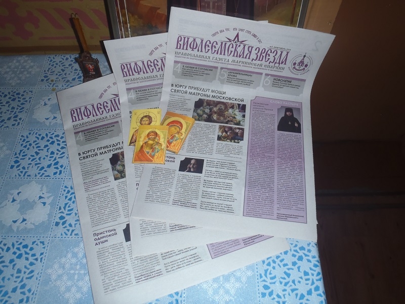 Ребятишкам достались иконы редкого типа, при изменении угла зрения на которые одно изображение сменяется на другое, а взрослые получили первый номер епархиальной газеты Мариинской епархии "Вифлеемская звезда".